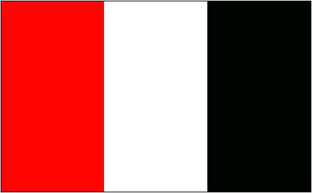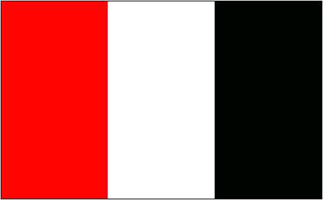 Per pale Gules, Argent, and Sable; a shield tierced in pale, the dexter field Gules, the sinister field Sable, and the central pale Argent.